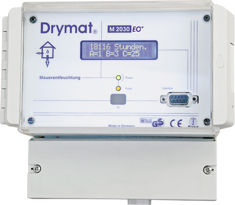 Der Trocknungsvorgang wird durch das Steuergerät überwacht und dokumentiert. So können Anlagen einfach und schnell bei Bedarf sinnvoll nachjustiert oder nachgerüstet werden. So erhält man bei besonders niedrigen Betriebskosten einen hohen und langfristigen Nutzen im Rahmen einer Wandtrockenlegung. Die Effizienz der Drymat® Systeme wird auch dadurch dokumentiert, dass das Unternehmen seinen Kunden hervorragende Trocknungsergebnisse schriftlich garantiert. Diese Garantiezeit auf die Technik liegt bei 20 Jahren. Zahlreiche Tests und Erfahrungen haben allerdings gezeigt, dass das Drymat® System auch noch nach rund 50 Jahren ausgezeichnet und störungsfrei arbeiten kann.